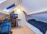 Via een vaste trap is de tweede verdieping bereikbaar. Hier bevindt zich een royale slaapkamer van ca. 14 m², voorzien van dakvensters die zorgen voor een aangename lichtinval. Daarnaast is er praktische bergruimte achter de knieschotten. Achter een vaste kast is de opstelplaats van de Cv-ketel netjes weggewerkt.